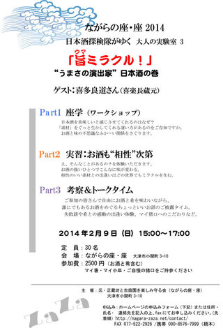 2月2日(日) でご案内しておりました「日本酒探検隊が行く 大人の実験室3」が都合により