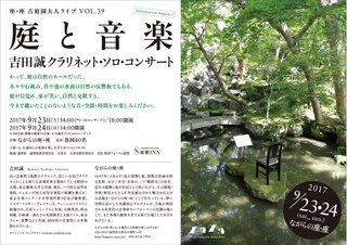 ライトアップした庭のなかで、とりわけ魅惑的な景色が出現していた。池の水面が鏡状になり、かすかな湧き水か、はたまた風によって生まれる波紋の相乗効果で、そこにはまるで底のない、地の底までも通じているようなこの世のものとも思えない樹木の姿が映し出されていた。吉田誠のクラリネット・ソロにはこの風景に通じるものがあるように思えた。